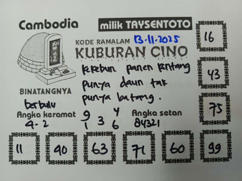 Syair Kuburan Cino Cambodia Hari Ini Kamis, 13 November 2025