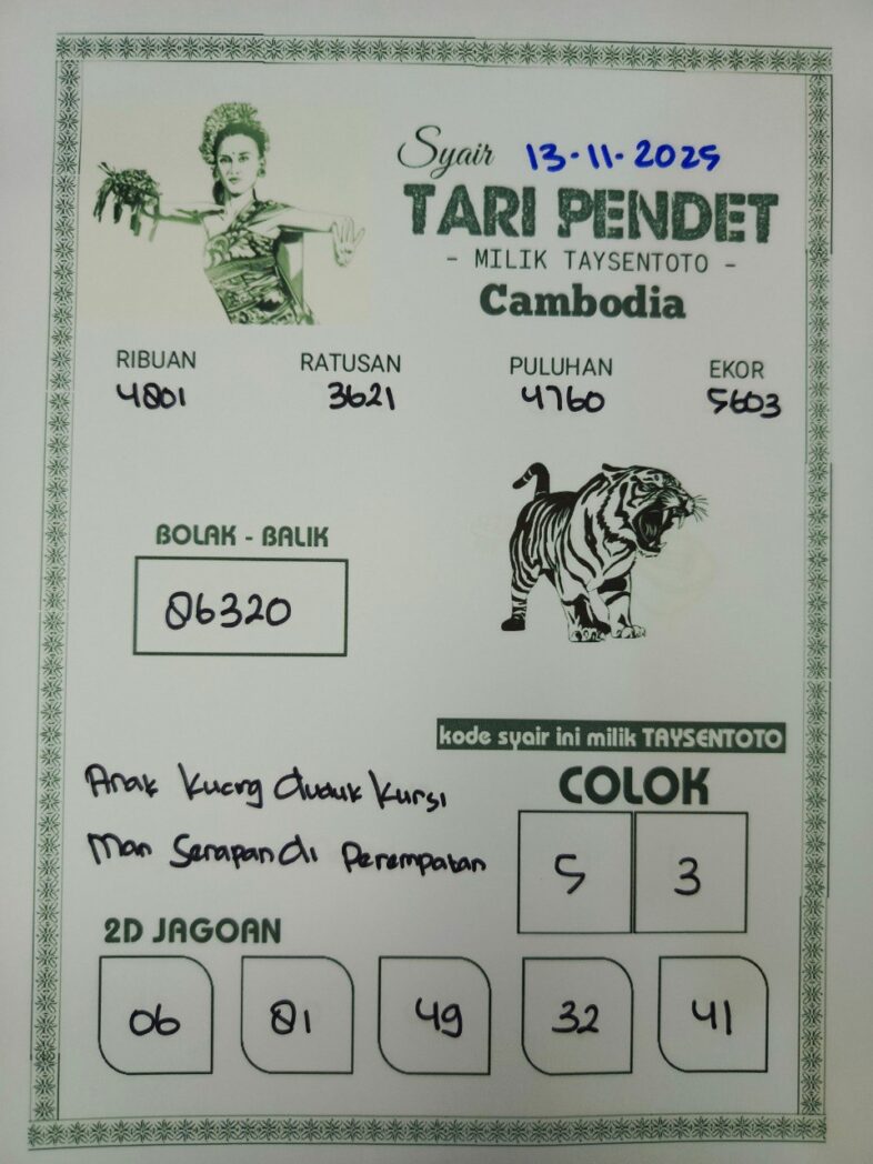Syair Tari Pendet Cambodia Hari Ini Kamis, 13 November 2025