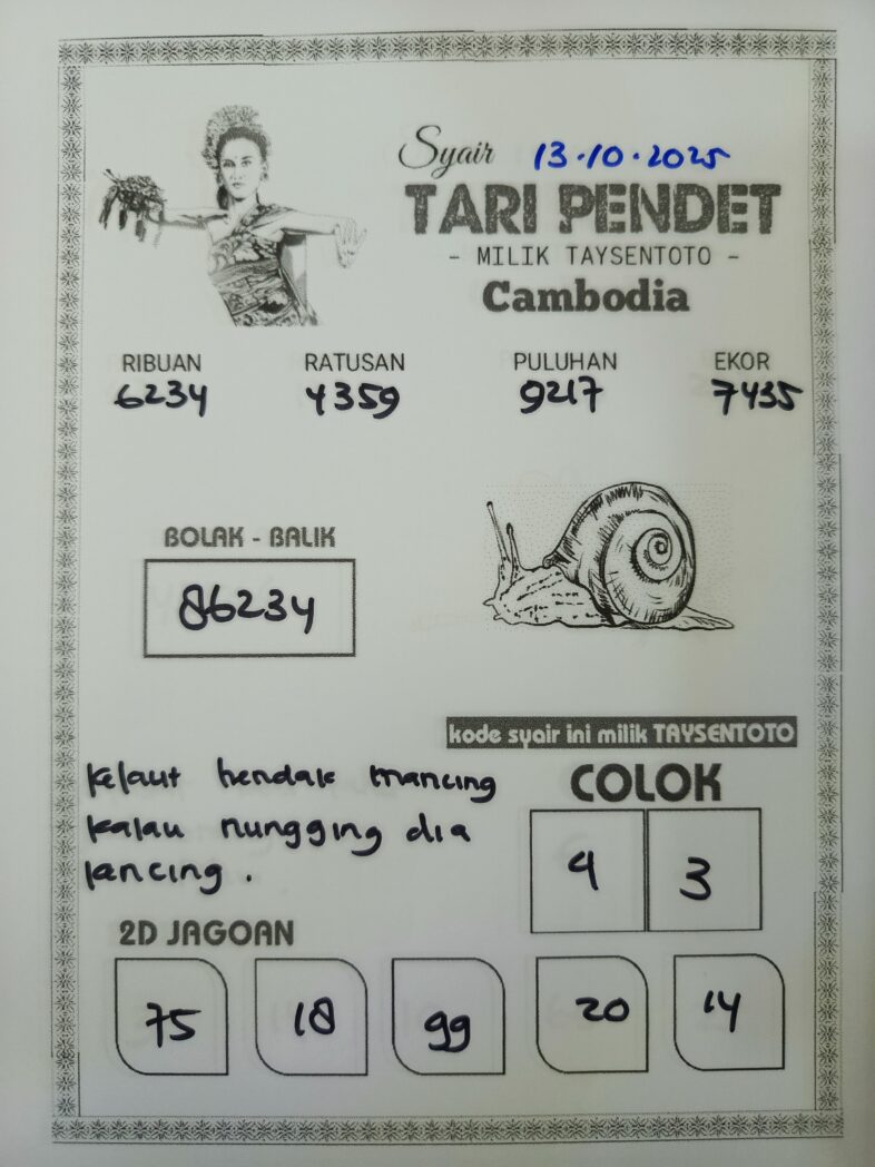 Syair Tari Pendet Cambodia Hari Ini Senin, 13 Oktober 2025