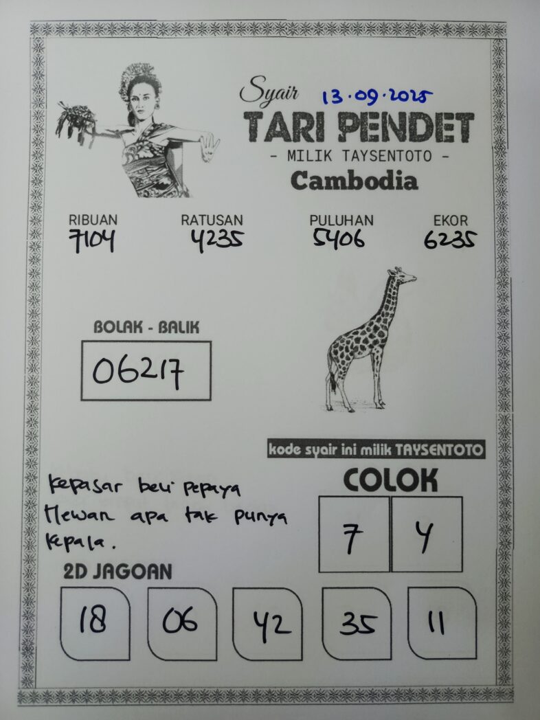 Syair Tari Pendet Cambodia Hari Ini Sabtu, 13 September 2025