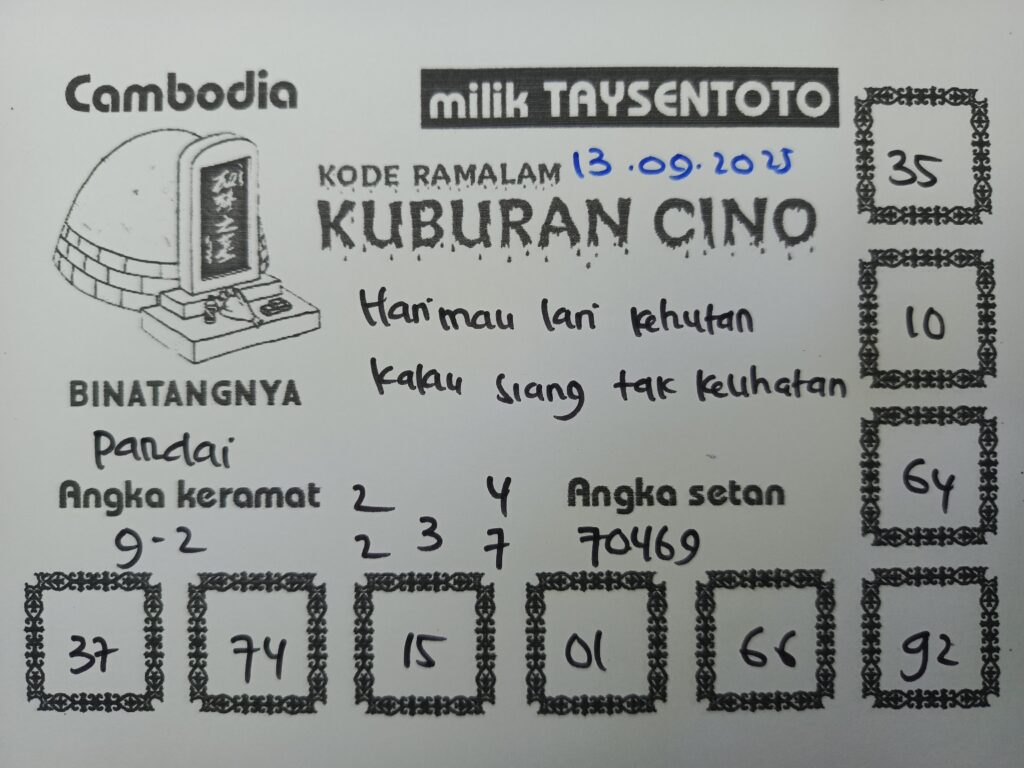 Syair Kuburan Cino Cambodia Hari Ini Sabtu, 13 September 2025