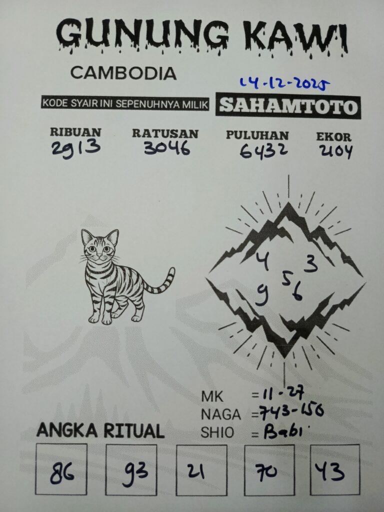 Syair Gunung Kawi Cambodia pools Hari ini Sabtu 13 Desember 2025