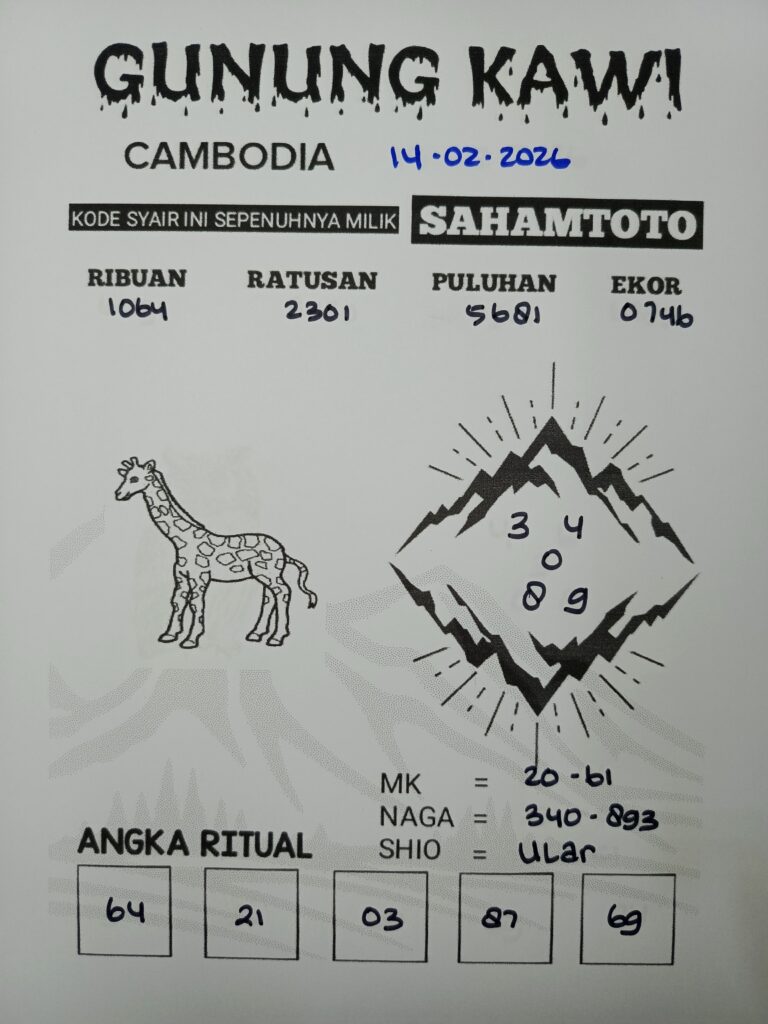 Syair Gunung Kawi Cambodia Pools Hari ini Sabtu 14 Februari 2026