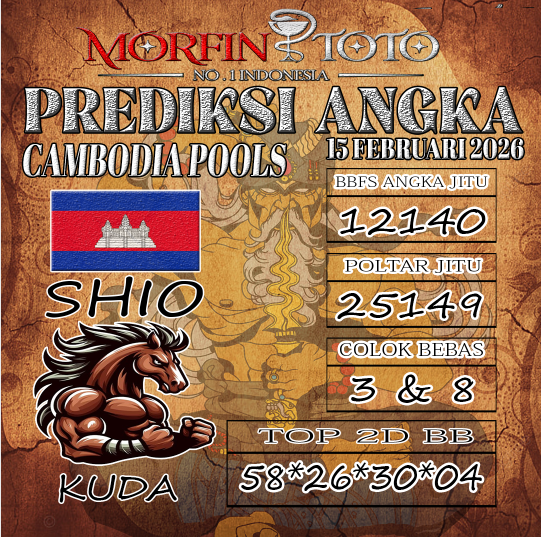 Syair lipan sakti Cambodia Pools Hari ini Minggu 15 Februari 2026