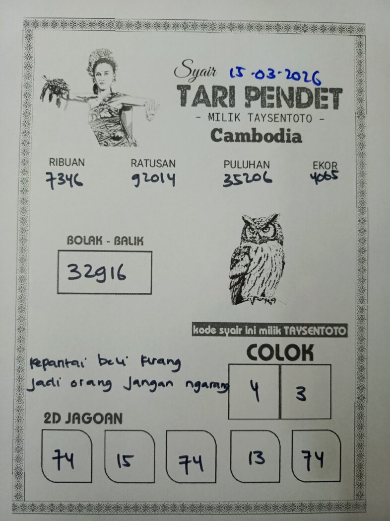 SYAIR TAYSEN CAMBODIA– Selamat datang di Situs Prediksi Togel Jitu dan Terpercaya. Hari ini kita akan mengulas Syair Togel Cambodia 15 Maret 2026. Syair Cambodia ini semata-mata hanya dibuat untuk membantu mempermudah para pemain toto gelap online dalam menebak secara tepat Angka Keluaran Cambodia.