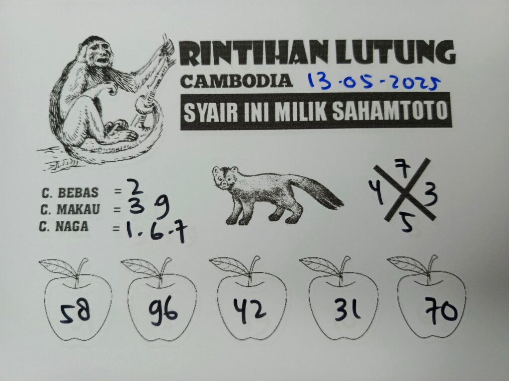 Syair Rintihan Lutung Cambodia pools Hari Ini Selasa, 13 Mei 2025