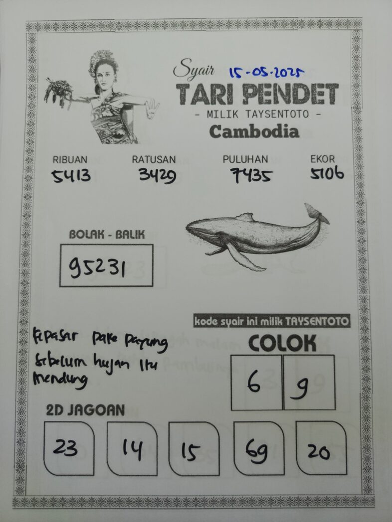 Syair Tari Pendet Cambodia Hari Ini Kamis, 15 Mei 2025