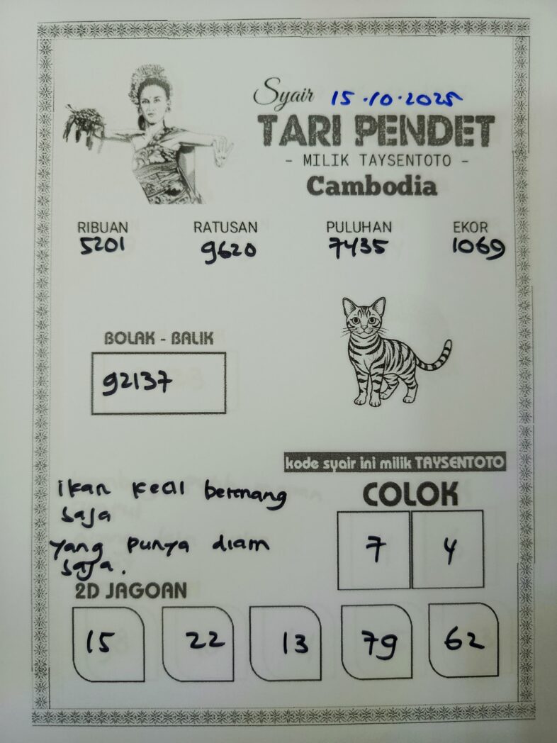 Syair Tari Pendet Cambodia Hari Ini Rabu, 15 Oktober 2025