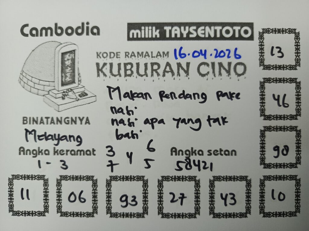 Syair Kuburan Cino Cambodia Hari Ini Kamis, 16 April 2026