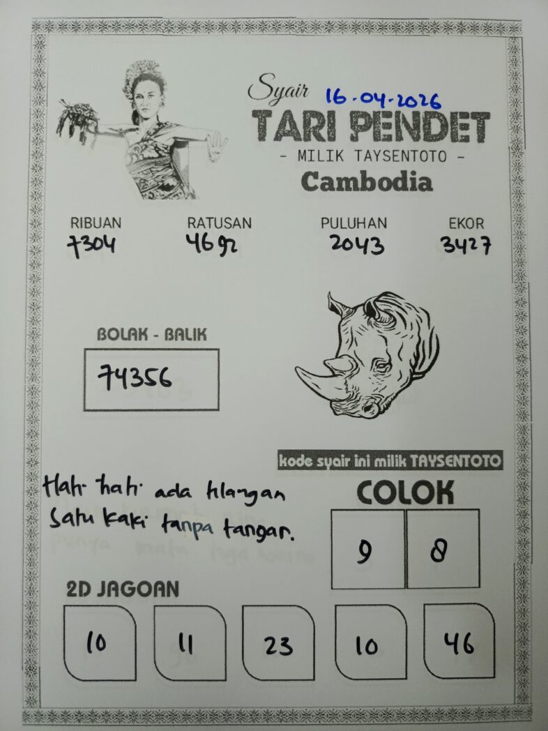 Syair Tari Pendet Cambodia Hari Ini Kamis, 16 April 2026