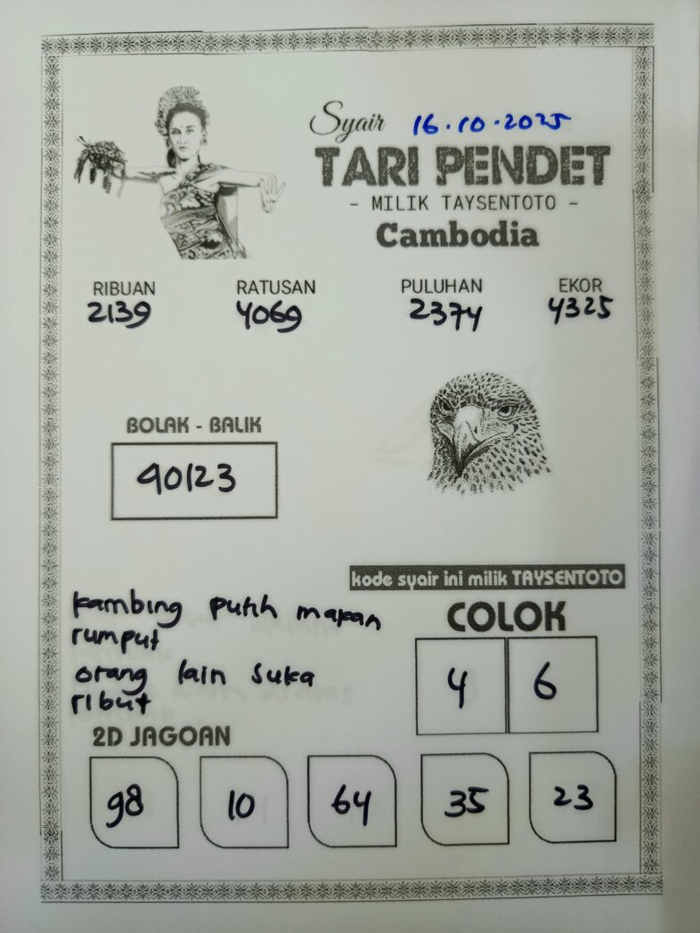 Syair Tari Pendet Cambodia Hari Ini Kamis, 16 Oktober 2025