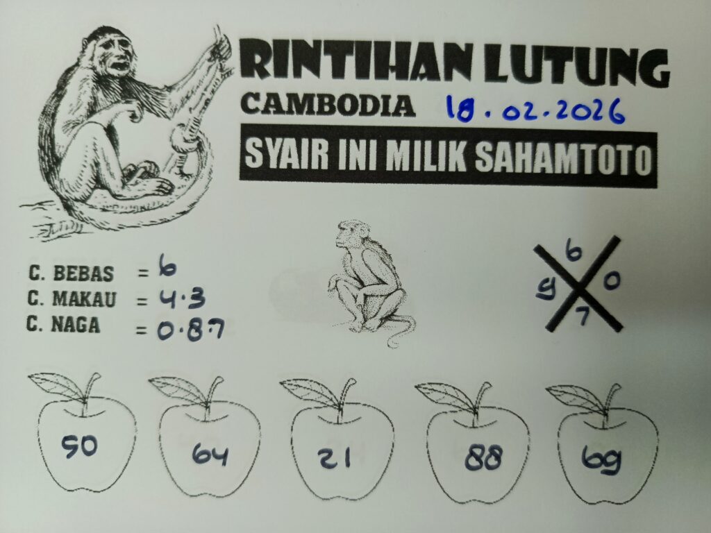 Syair Rintihan Lutung Cambodia Pools Hari ini Rabu 18 Februari 2026