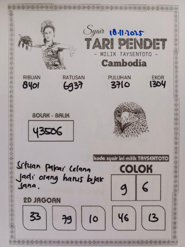 Syair Tari Pendet Cambodia Hari Ini Selasa, 18 November 2025