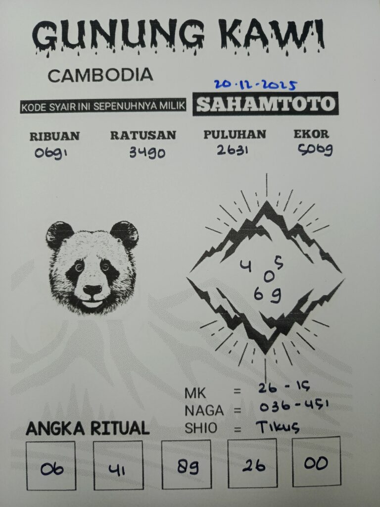 Syair Gunung Kawi Cambodia pools Hari ini 20 Desember 2025