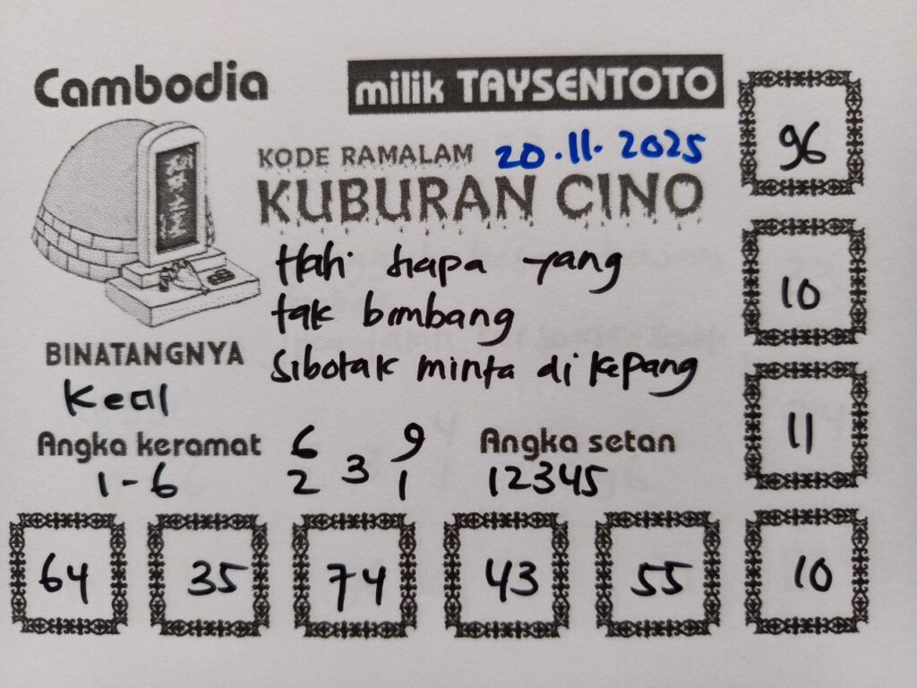 SYAIR TAYSEN CAMBODIA– Selamat datang di Situs Prediksi Togel Jitu dan Terpercaya. Hari ini kita akan mengulas Syair Togel Cambodia 20 November 2025. Syair Cambodia ini semata-mata hanya dibuat untuk membantu mempermudah para pemain toto gelap online dalam menebak secara tepat Angka Keluaran Cambodia.