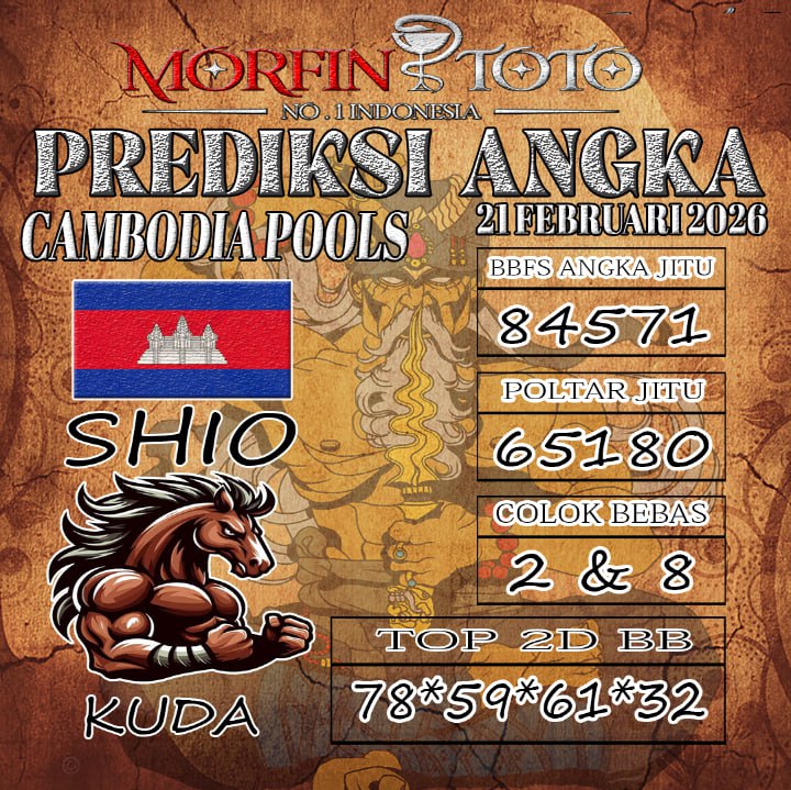 Syair lipan sakti Cambodia Pools Hari ini Sabtu 21 Februari 2026