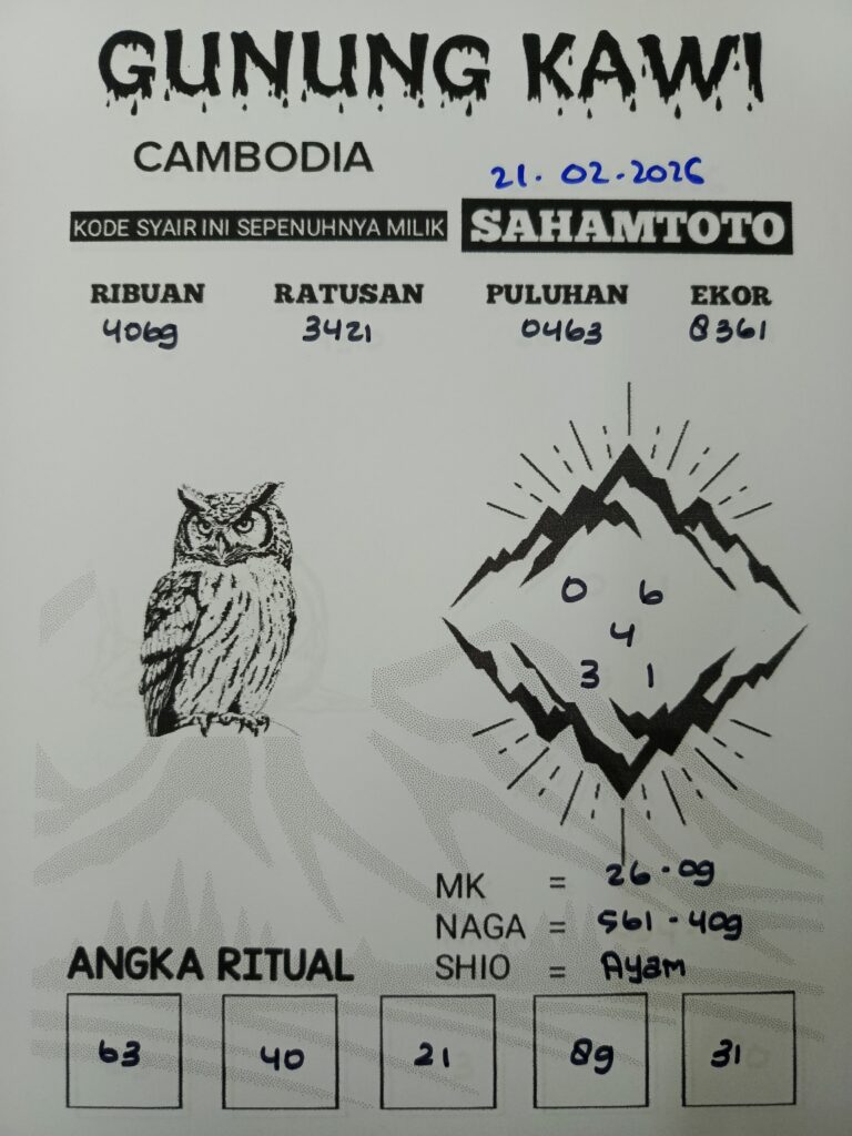 Syair Gunung Kawi Cambodia Pools Hari ini Sabtu 21 Februari 2026