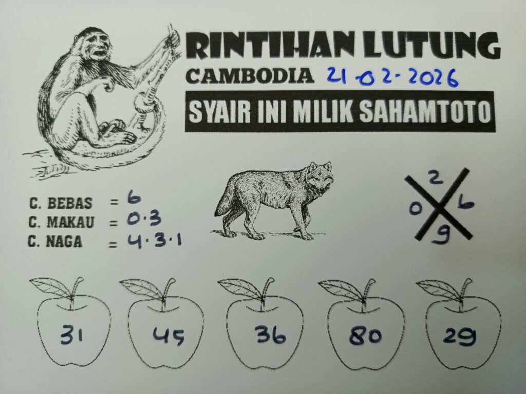Syair Rintihan Lutung Cambodia Pools Hari ini Sabtu 21 Februari 2026