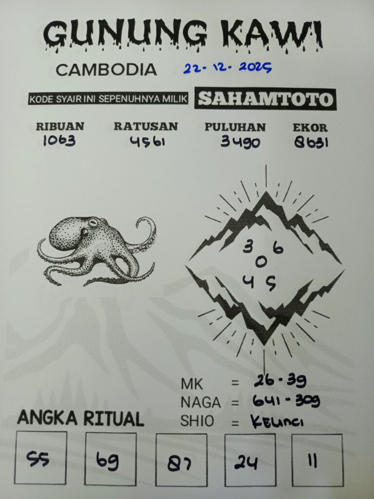 Syair Gunung Kawi Cambodia pools Hari ini 22 Desember 2025