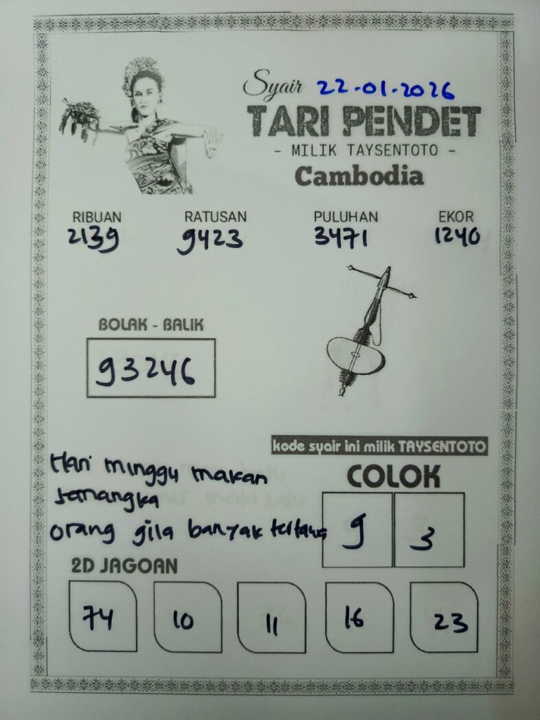 Syair Tari Pendet Cambodia Hari Ini Kamis, 22 Januari 2026