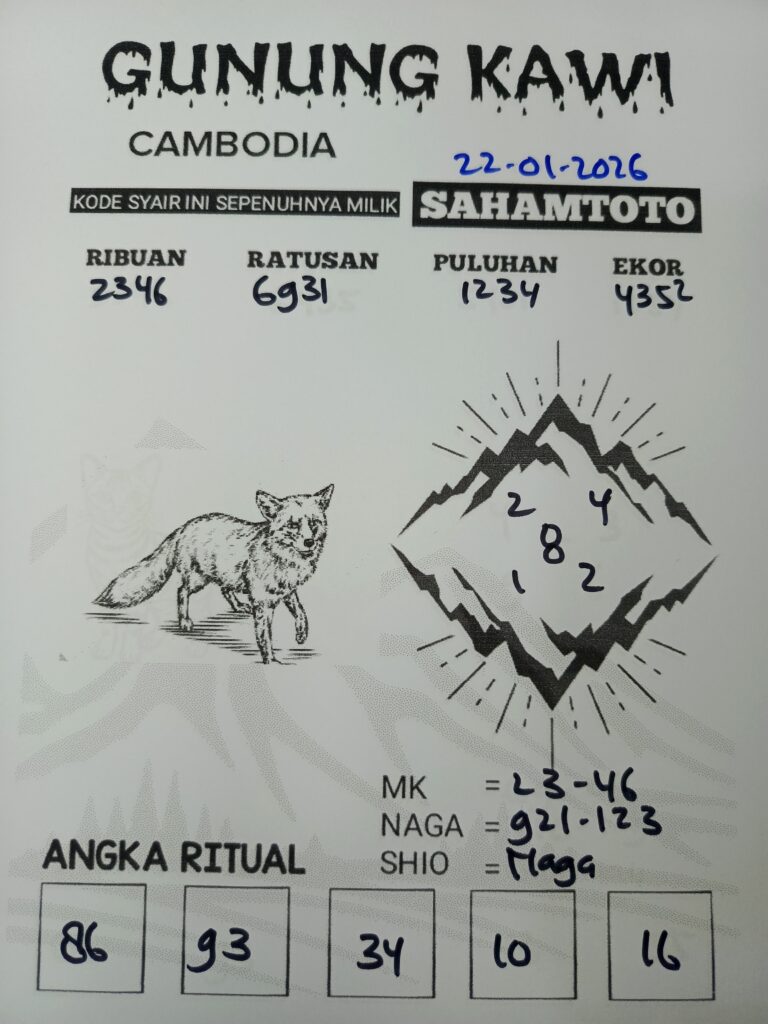 Syair Gunung Kawi Cambodia Pools Hari ini 22 Januari 2026