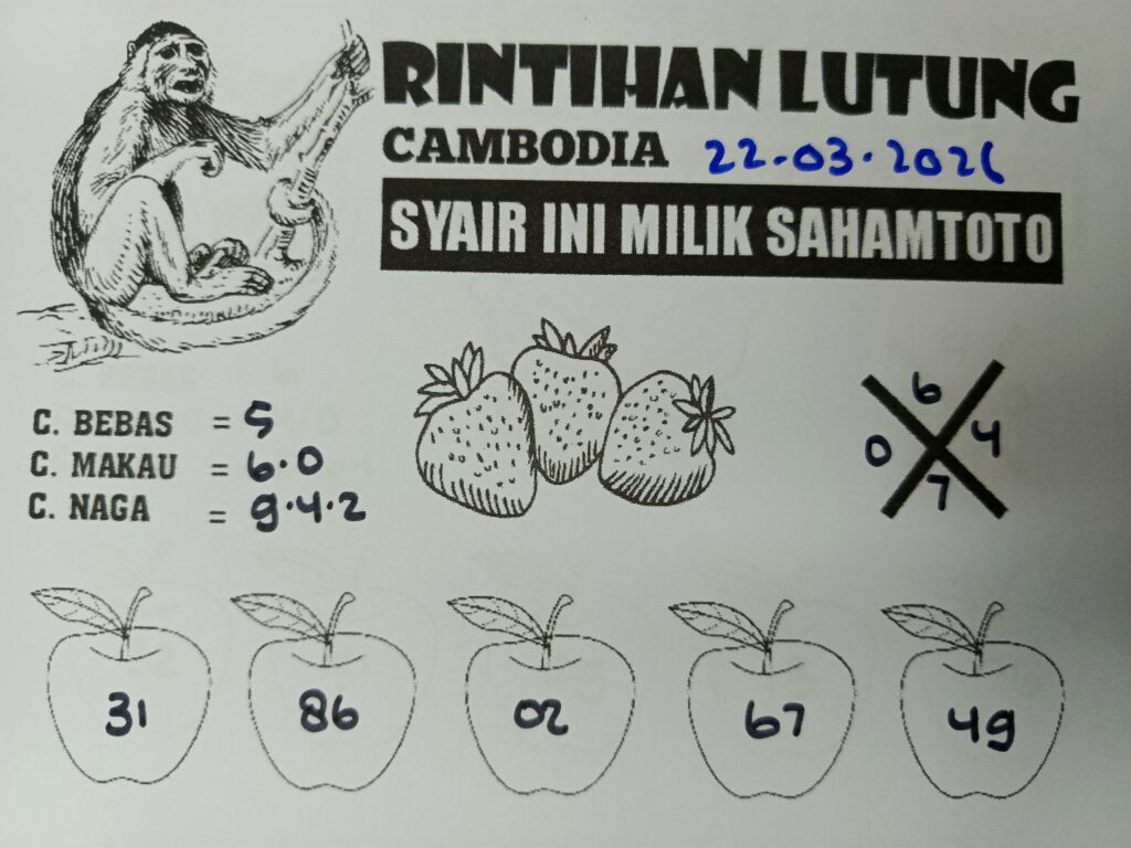 Syair Rintihan Lutung Cambodia Pools Hari ini Minggu 22 Maret 2026