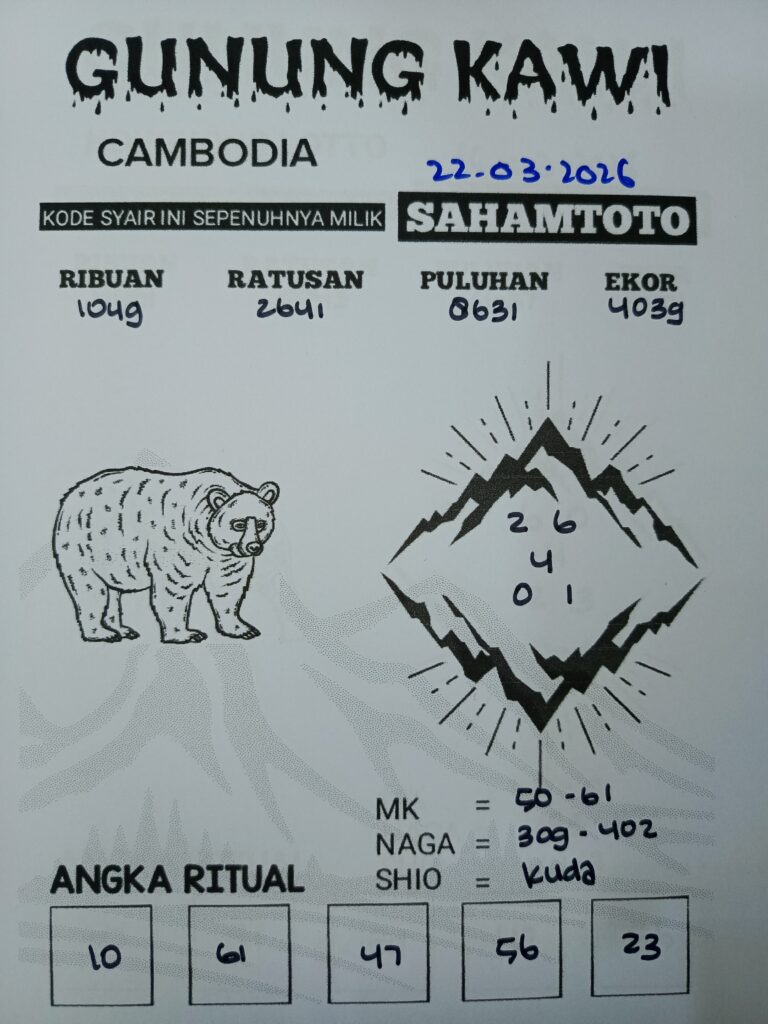 Syair Gunung Kawi Cambodia Pools Hari ini Minggu 22 Maret 2026