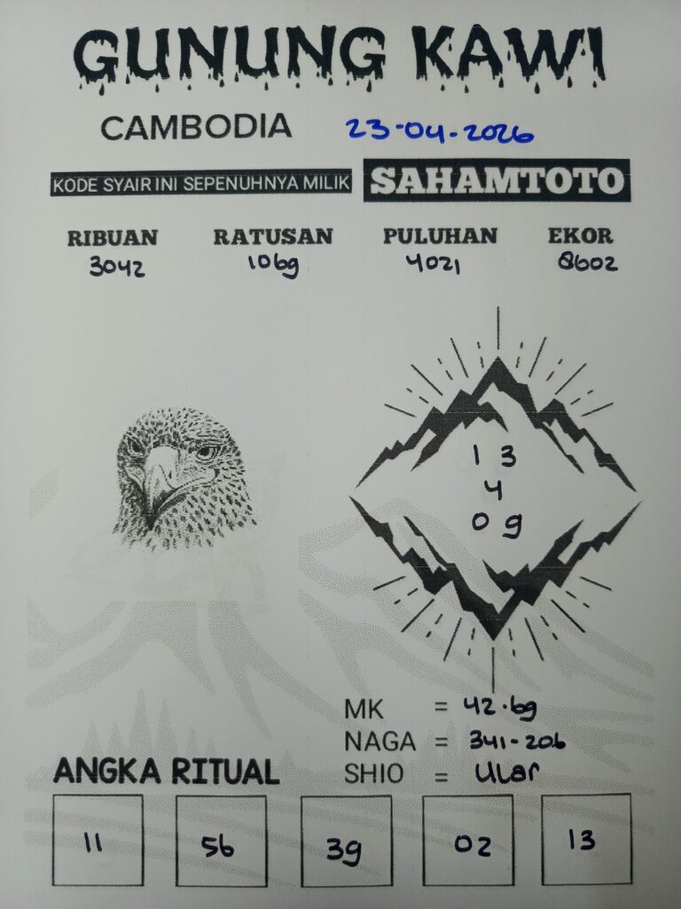 Syair Gunung Kawi CAMBODIA Pools Hari ini KAMIS, 23 April 2026