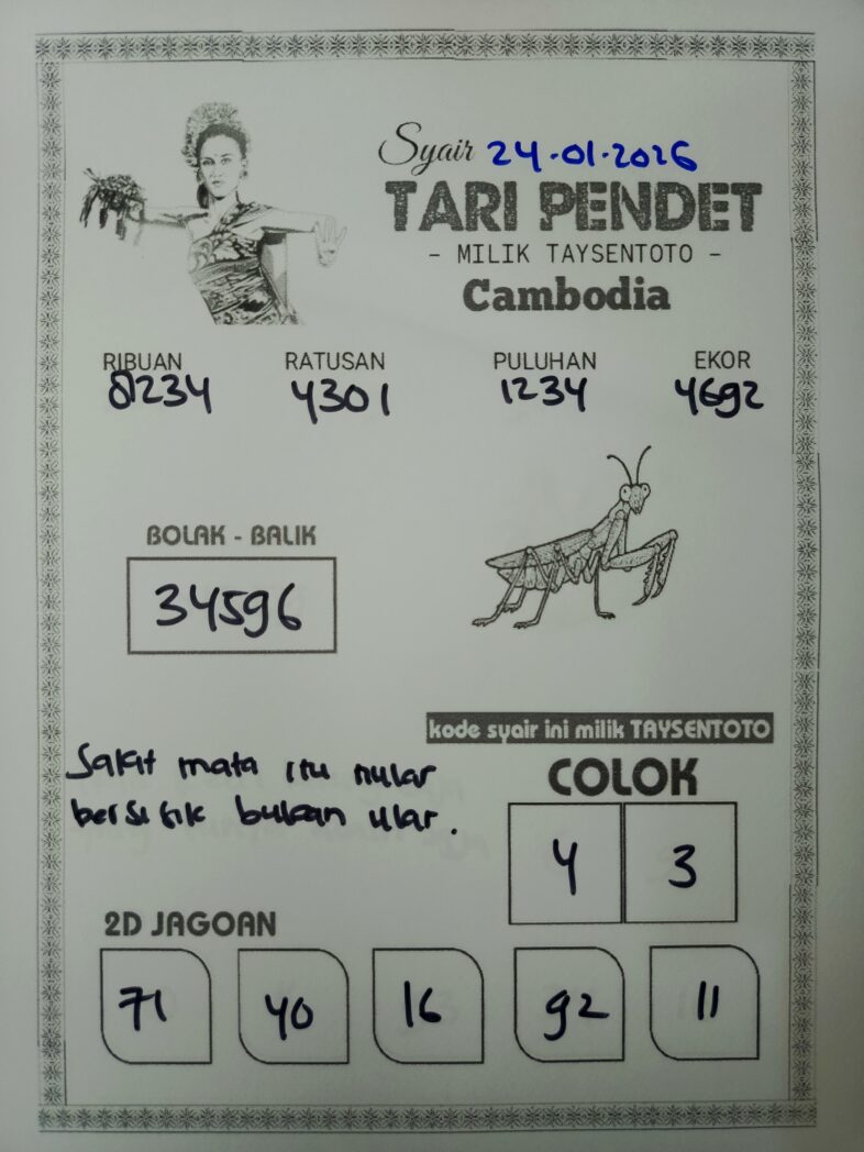 Syair Tari Pendet Cambodia Hari Ini Sabtu, 24 Januari 2026