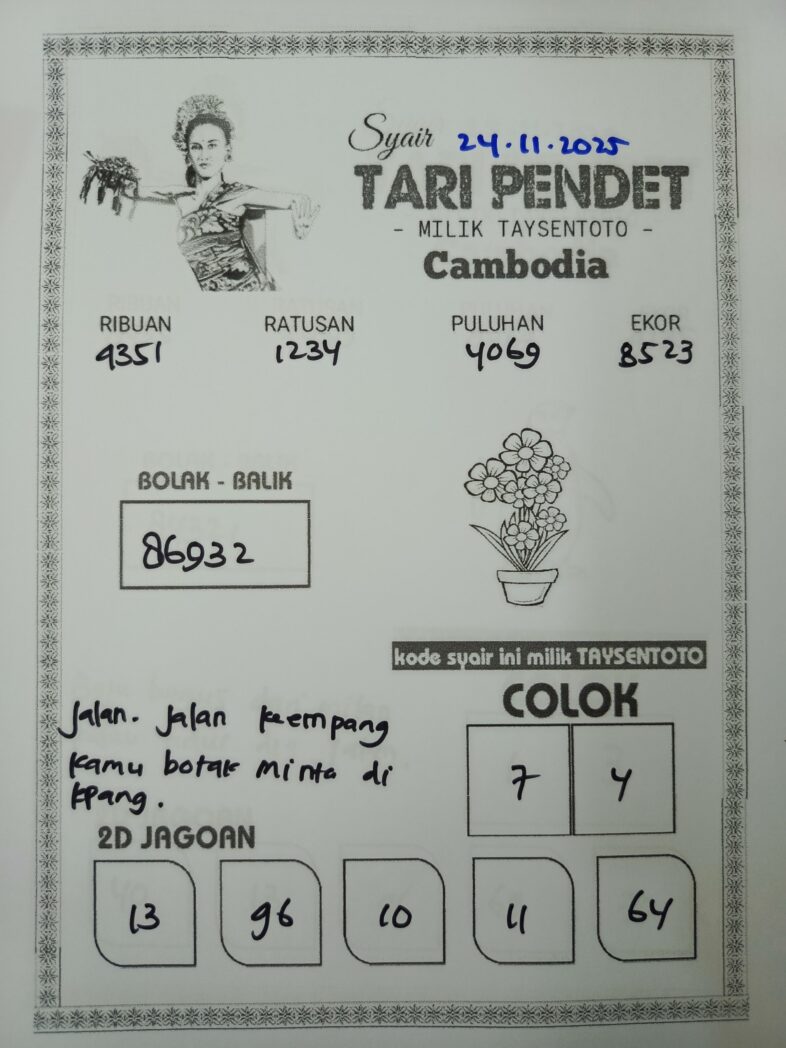 Syair Tari Pendet Cambodia Hari Ini Senin, 24 November 2025