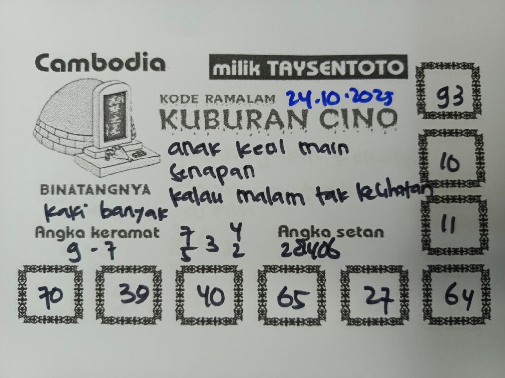 SYAIR TAYSEN CAMBODIA– Selamat datang di Situs Prediksi Togel Jitu dan Terpercaya. Hari ini kita akan mengulas Syair Togel Cambodia 23 Oktober 2025. Syair Cambodia ini semata-mata hanya dibuat untuk membantu mempermudah para pemain toto gelap online dalam menebak secara tepat Angka Keluaran Cambodia.