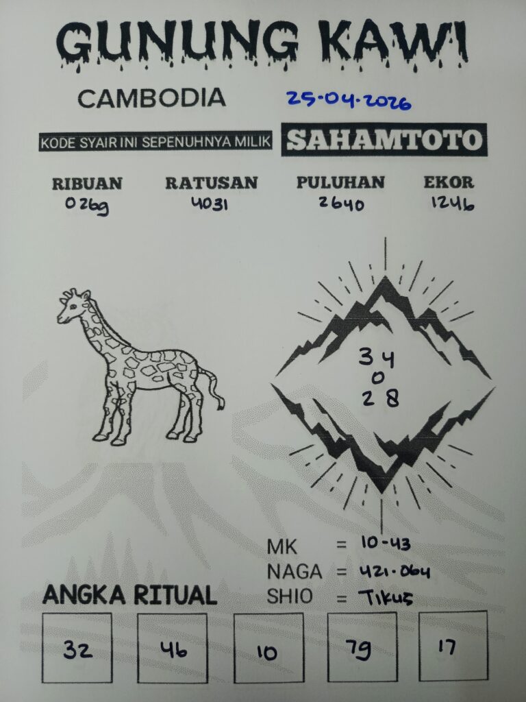 Syair Gunung Kawi CAMBODIA Pools Hari ini jumat , 25 April 2026