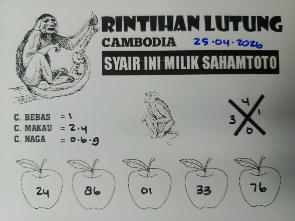 Syair Rintihan Lutung CAMBODIA Pools Hari ini jumat , 25 April 2026