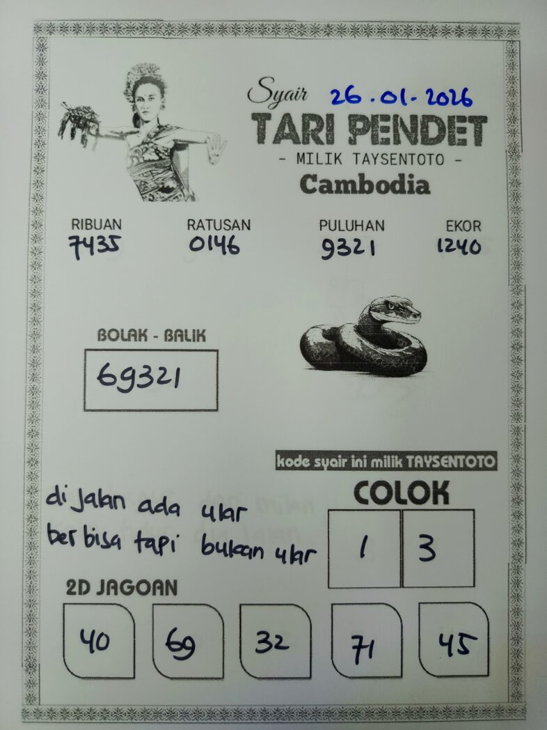 Syair Tari Pendet Cambodia Hari Ini Senin, 26 Januari 2026