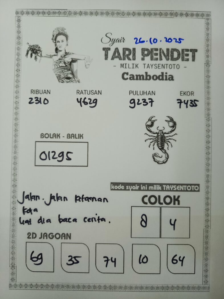 Syair Tari Pendet Cambodia Hari Ini Minggu, 26 Oktober 2025