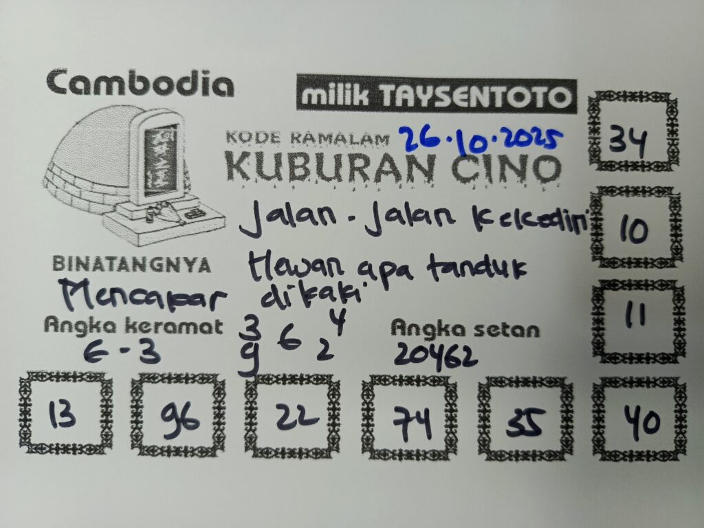 Syair Kuburan Cino Cambodia Hari Ini Minggu, 26 Oktober 2025