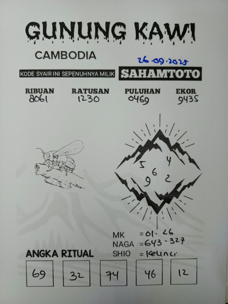 Syair Gunung Kawi CAMBODIA Pools Hari ini Jumat 26 September 2025