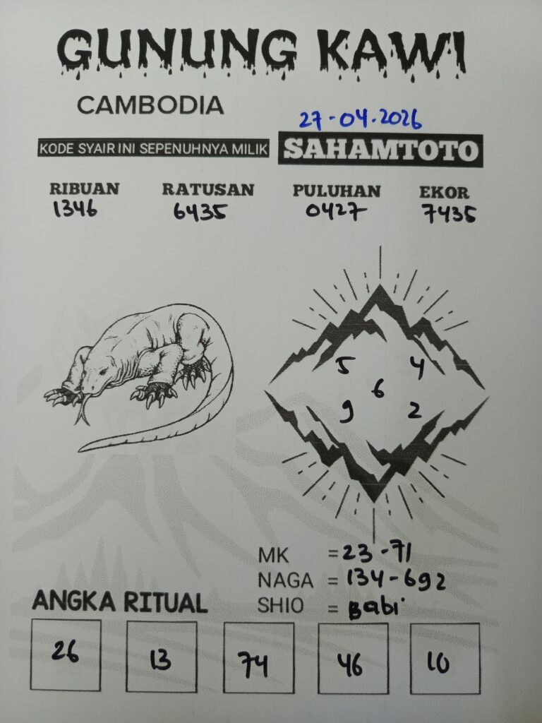 Syair Gunung Kawi CAMBODIA Pools Hari ini jumat , 25 April 2026