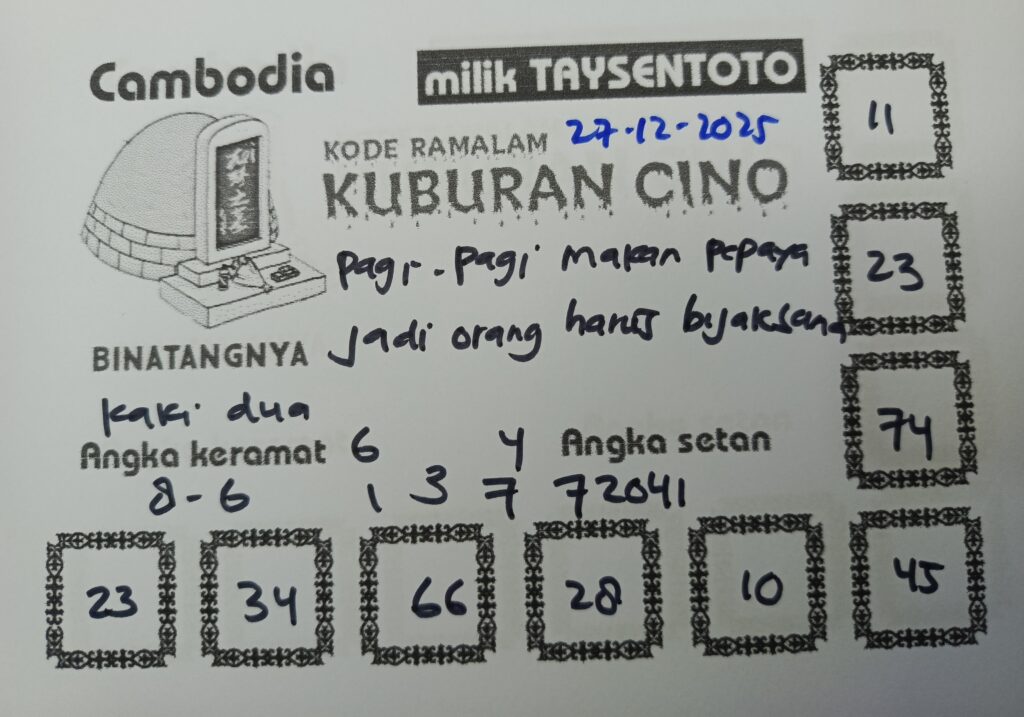 Syair Kuburan Cino Cambodia Hari Ini Sabtu, 27 Desember 2025
