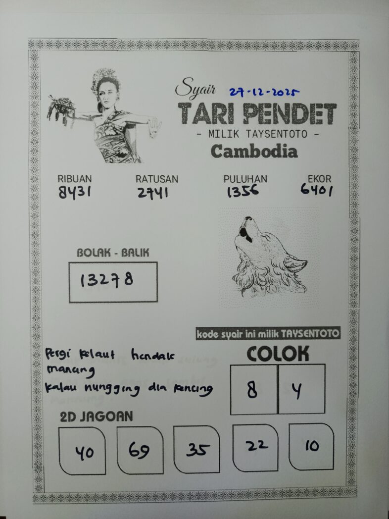 Syair Tari Pendet Cambodia Hari Ini Sabtu, 27 Desember 2025