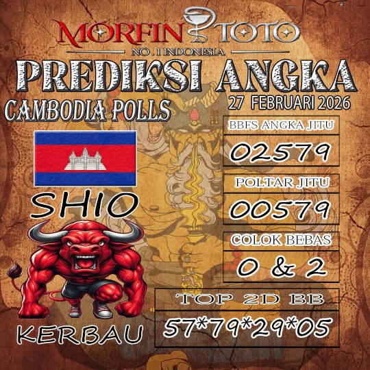 Syair lipan sakti CAMBODIA Pools Hari ini Jumat, 27 Februari 2026
