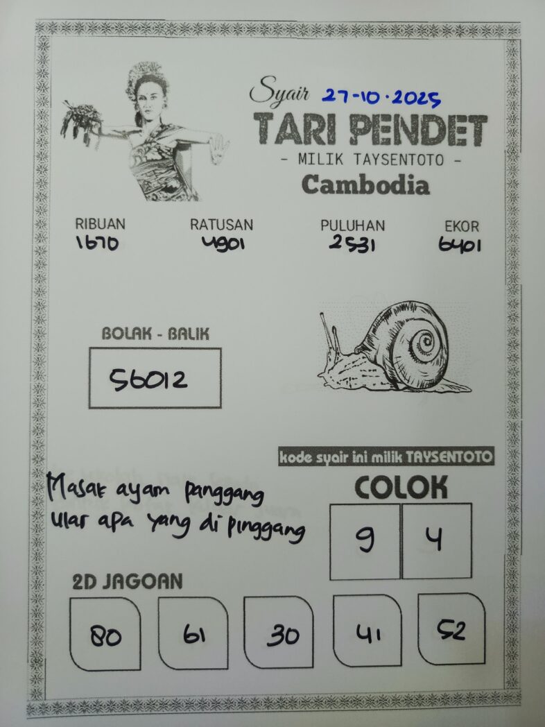 Syair Tari Pendet Cambodia Hari Ini Senin, 27 Oktober 2025