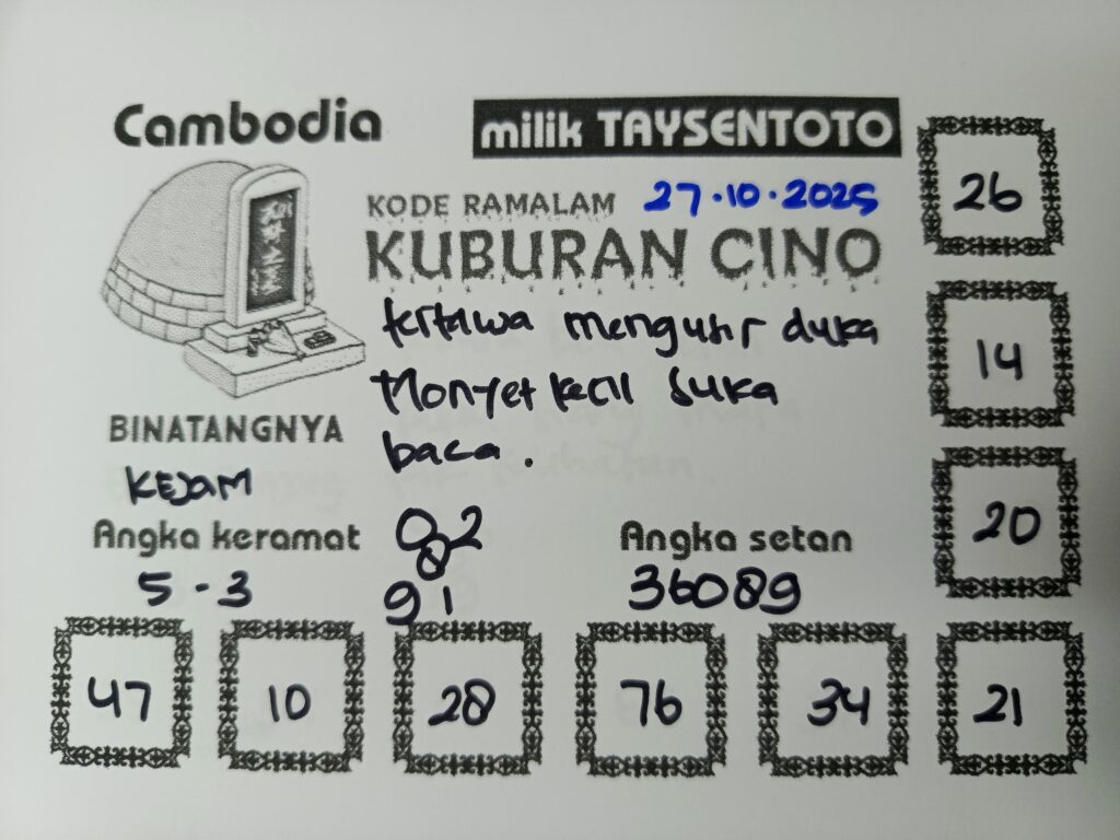 Syair Kuburan Cino Cambodia Hari Ini Senin, 27 Oktober 2025