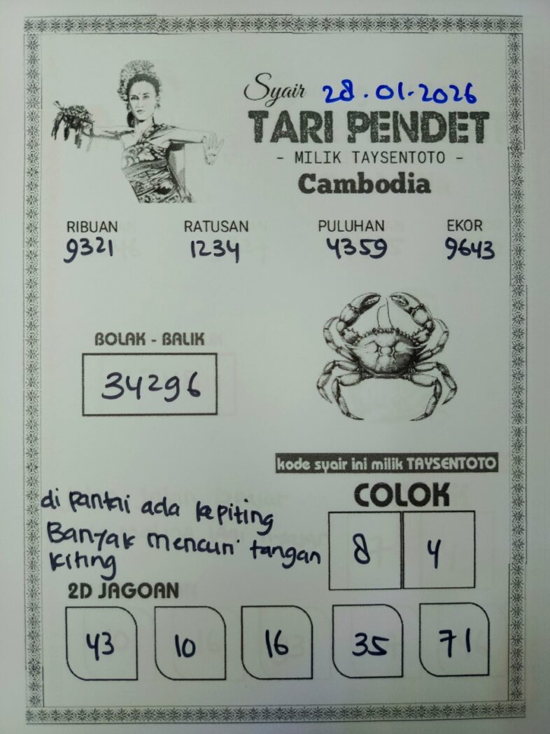 Syair Tari Pendet Cambodia Hari Ini Rabu, 28 Januari 2026