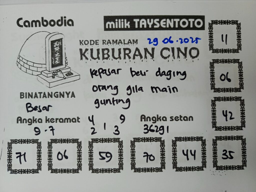 Syair Kuburan Cino  Cambodia Hari Ini Minggu, 29 Juni 2025