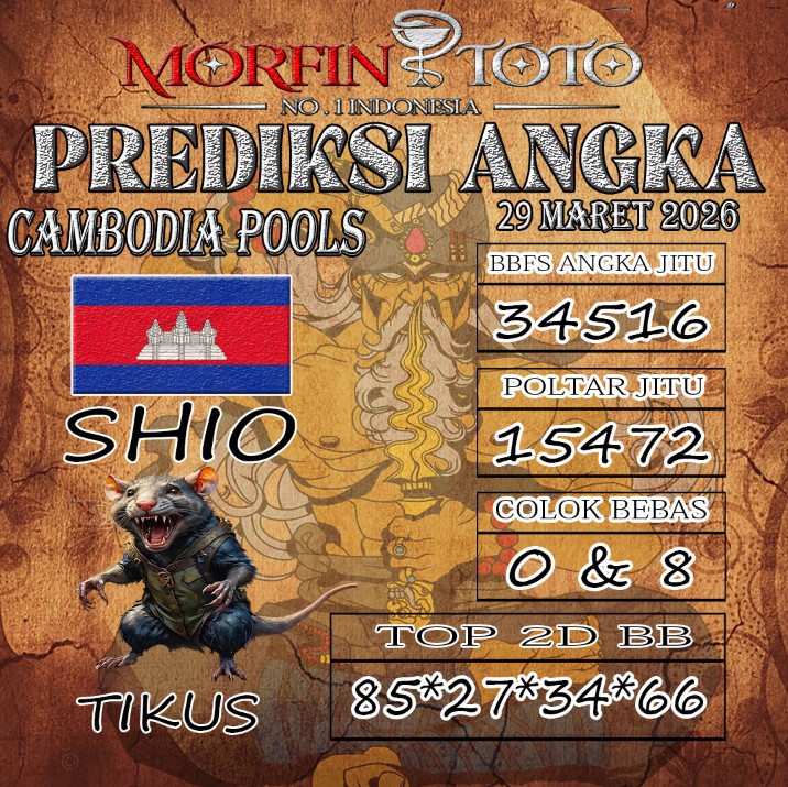 Syair lipan sakti Cambodia Pools Hari ini Minggu 29 Maret 2026