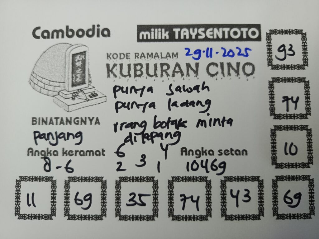SYAIR TAYSEN CAMBODIA– Selamat datang di Situs Prediksi Togel Jitu dan Terpercaya. Hari ini kita akan mengulas Syair Togel Cambodia 29 November 2025. Syair Cambodia ini semata-mata hanya dibuat untuk membantu mempermudah para pemain toto gelap online dalam menebak secara tepat Angka Keluaran Cambodia.