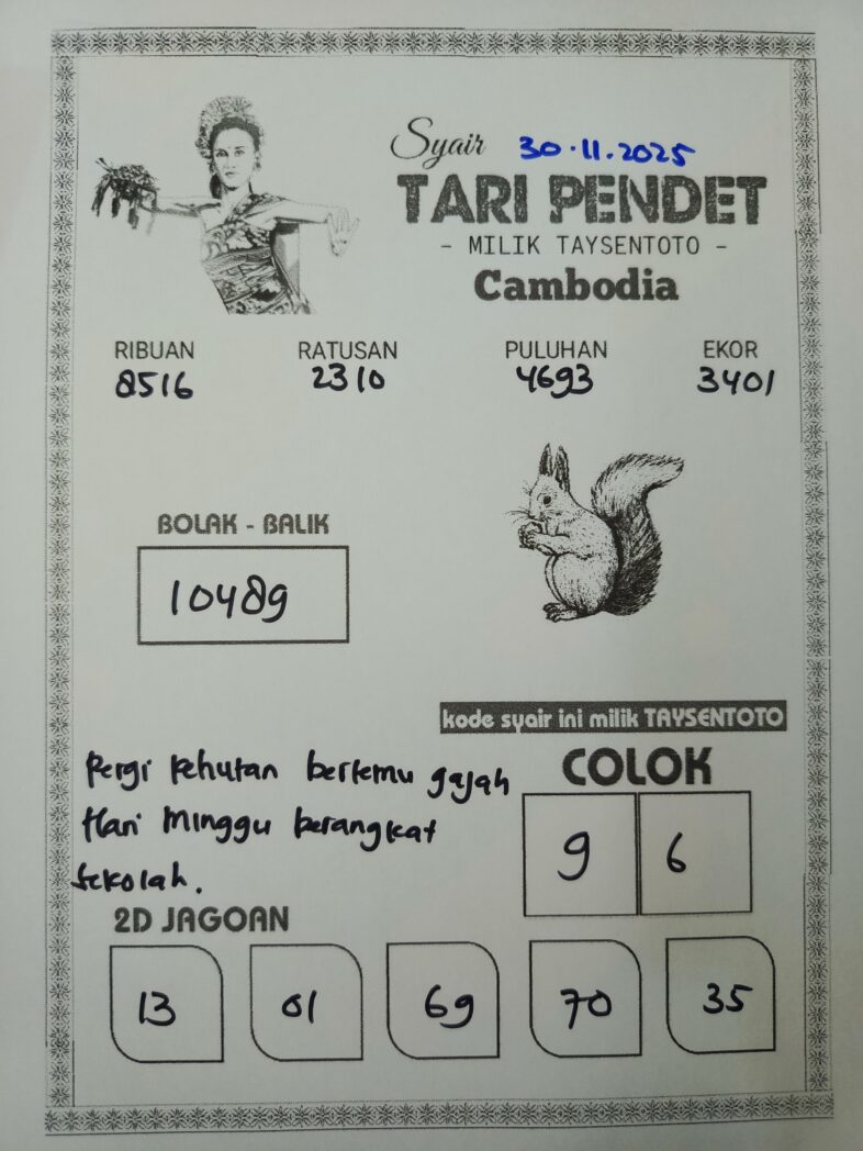 Syair Tari Pendet Cambodia Hari Ini Minggu, 30 November 2025