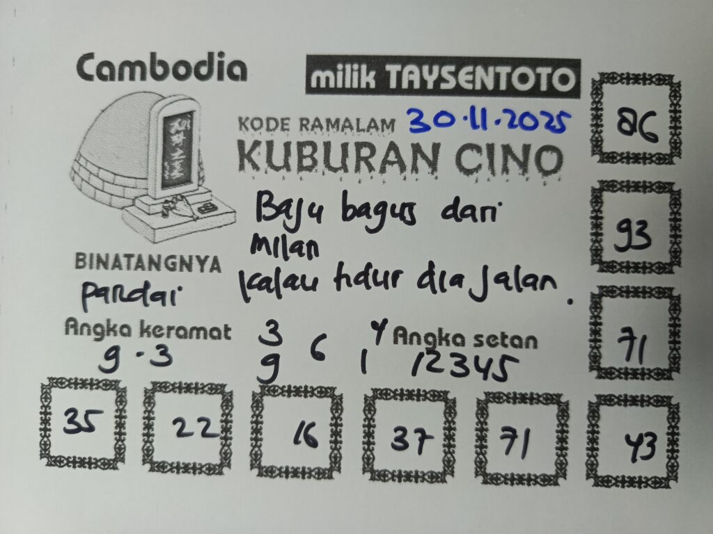 SYAIR TAYSEN CAMBODIA– Selamat datang di Situs Prediksi Togel Jitu dan Terpercaya. Hari ini kita akan mengulas Syair Togel Cambodia 30 November 2025. Syair Cambodia ini semata-mata hanya dibuat untuk membantu mempermudah para pemain toto gelap online dalam menebak secara tepat Angka Keluaran Cambodia.
