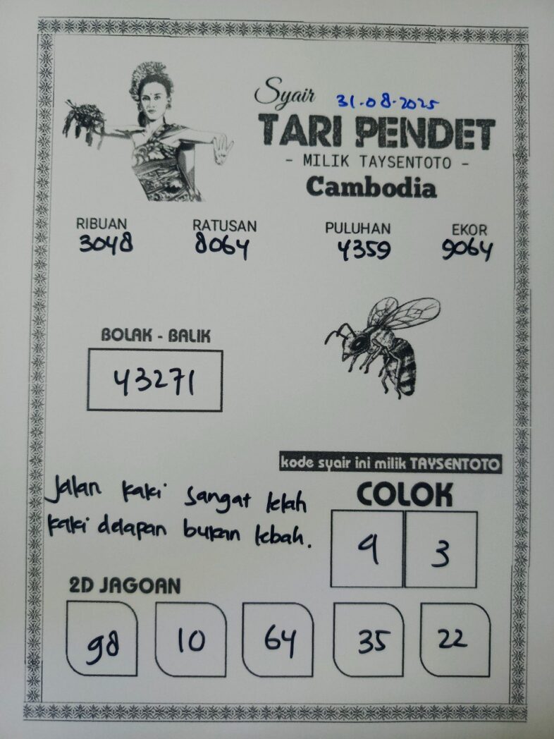 Syair Tari Pendet Cambodia Hari Ini Minggu, 31 Agustus 2025